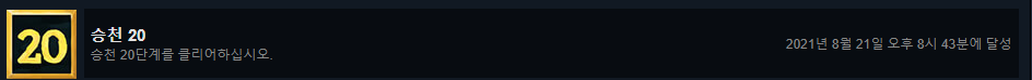필자 역시 20승천 첫 심장 도전은 실패로 끝났지만 업적이 달성되었다.