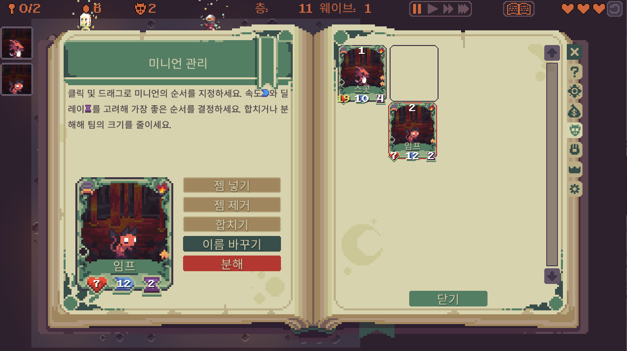 플레이어가 하는 거라곤 길 설정과 몬스터 뽑기, 강화 정도인데...